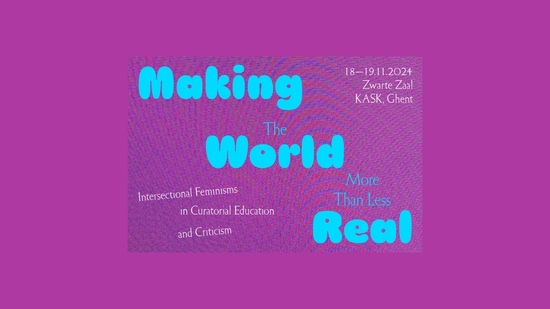 Les 18 et 19 novembre 2024, Curatorial Studies, programme de formation axé sur les questions curatoriales, et le KASK & Conservatorium/School of Arts, en collaboration avec le S.M.A.K. de Gand, coorganisent une série de conférences intitulée “Making The World More Than Less Real: Intersectional Feminisms in Curatorial Education and Criticism”. Les présentations et tables rondes questionneront la place du féminisme dans les pratiques de curation, la représentation des artistes féminines et l’écriture et la critique d’art.