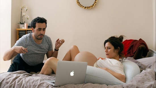 "Énorme" aborde la masculinité toxique et la maternité en déjouant les clichés : à 40 ans, Frédéric s’éprend d’une soudaine envie de paternité après avoir assisté à une naissance surprise dans un vol Paris-New-York. Il en vient alors à trafiquer la pilule de Claire, sa femme, pour que celle-ci tombe enceinte.