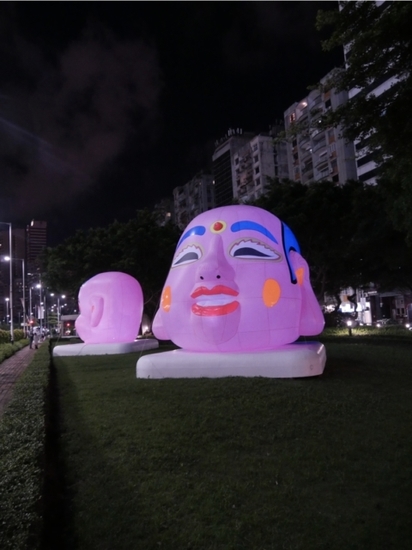 In de installatie Happy Heads – Love Songs reciteert in een kunstmatige, emotieloze stem liefdesverklaringen uit populaire songs in verschillende talen. De stem weerklinkt uit immense hoofden met een verstarde glimlach, geïnspireerd op de Chinese volkscultuur. Deze manier om gevoelens uit te drukken is bijzonder hedendaags: vandaag de dag wordt liefde geuit met tekstberichten of emoji’s. De technologie lijkt elke vorm van emotie teniet te doen.