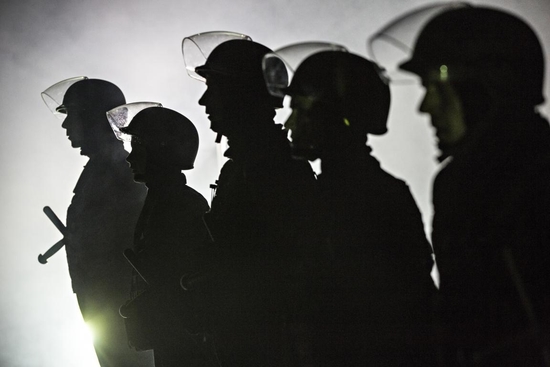 Au coeur du projet : les CRS. Dont cinq acteurs endossent le rôle, jusqu’au bout, sans chercher à dénoncer ni se distancier. Reprenant gestes, armes, tenues, actions, ils se donnent à fond !