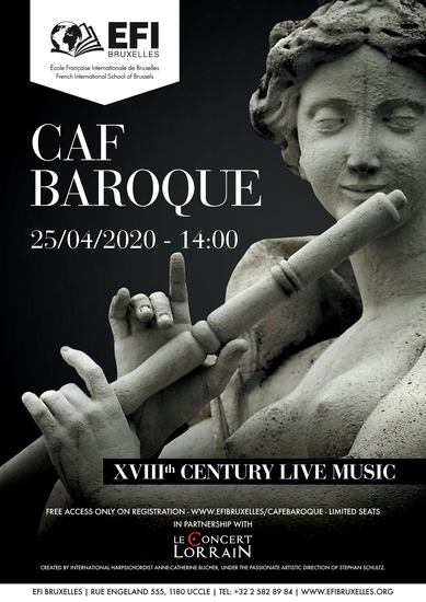 L’École Française Internationale de Bruxelles vous convie, le samedi 25 avril 2020 à 14h00, à un Café Baroque : un concert original durant lequel vous apprécierez les œuvres sacrées et profanes de Lulli, Bach, Haendel,... au son d’instruments anciens.
