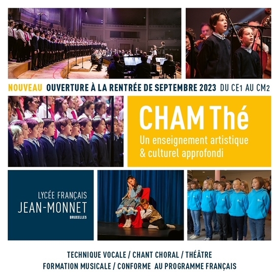 Dés la Rentrée de septembre, le lycée français Jean-Monnet proposera, de la 2ème à la 5ème primaire, un parcours artistique et culturel approfondi, intégré au programme scolaire. La classe à horaires aménagés Musique et Théâtre (CHAMThé) bien connue en France, est ici proposée pour la première fois en Belgique et dans un lycée français de l’étranger.