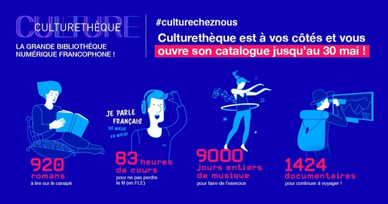 Het Institut français geeft u toegang tot de Culturethèque, de Franstalige digitale bibliotheek. Indien u zich in het buitenland bevindt, schrijf u dan vóór 15 april in om uw login te bekomen.