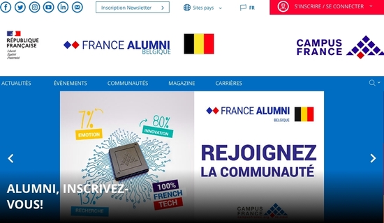 Het platform France Alumni België is opgezet als een professioneel netwerk en stelt Franse en buitenlandse alumni die in België verblijven in staat om in contact te komen met Franse afgestudeerden in het hoger onderwijs, om vacatures te raadplegen die door partnerbedrijven worden gepubliceerd en om deel te nemen aan exclusieve evenementen.
